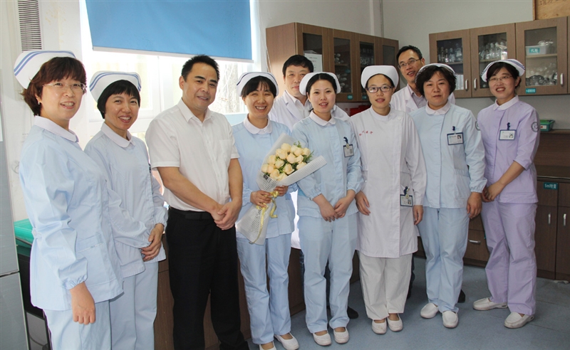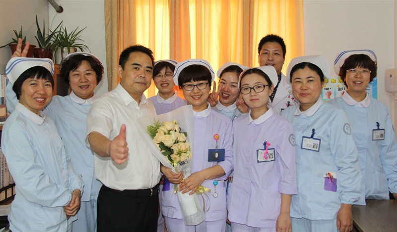院領(lǐng)導(dǎo)為臨床一線護(hù)理人員送上鮮花,帶去祝福