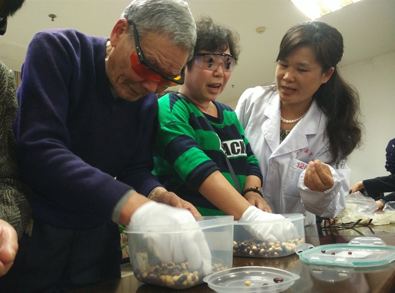 ?? ?陳育群護(hù)士長在講解的同時(shí)與在場聽眾互動(dòng),使用并發(fā)癥模擬用具,讓聽眾帶上模擬用具:沙袋、手套、有色眼鏡、縮小視野的眼鏡等等,讓糖尿病病人體驗(yàn)并發(fā)癥的感受。參加體驗(yàn)的聽眾深刻感受到并發(fā)癥帶來的危害和給生活上的不便,都表示要積極預(yù)防,遠(yuǎn)離并發(fā)癥。
