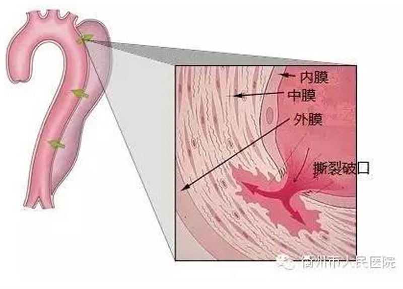??? 主動脈夾層是指在主動脈中層發(fā)生撕裂后,使血液在撕裂形成的腔隙(假腔)中流,原有的主動脈腔稱為真腔。真假腔之間由內(nèi)膜與部分中層分隔,并有一個或數(shù)個破口相通。急性主動脈夾層發(fā)生后,若不進(jìn)行治療,48小時死亡率為36%---72%,一周內(nèi)死亡率達(dá)到62%---91%,即使在院內(nèi)治療,平均死亡率也高達(dá)27%,如果夾層累及重要血管分之引起臟器缺血,死亡率會更高。