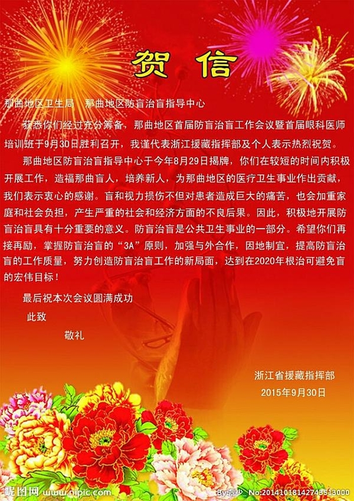??? 10月2日,“那曲地區(qū)首屆防盲治盲工作會議暨首屆眼科醫(yī)生培訓班開班典禮”終于圓滿落下帷幕,會議收到了浙江援藏指揮部指揮長、那曲行署常務副專員李華代表浙江援藏指揮部發(fā)來的賀信,行署人大副秘書長達瓦受行署委托到會作了重要講話,自治區(qū)衛(wèi)生廳醫(yī)政處主任科員姜女士對本次會議成功召開、規(guī)格之高給予高度評價,表示由政府主導的防盲治盲的工作會議尚屬首次,今后將加大對那曲地區(qū)的防盲治盲工作政策傾斜和資金支持、成功經驗將在全區(qū)推廣,對浙江援藏?光明行動項目給予充分肯定。