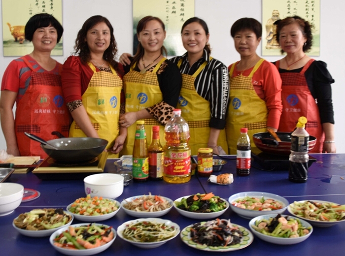 社區(qū)居民現(xiàn)場烹飪拿手的家常降壓健康菜肴