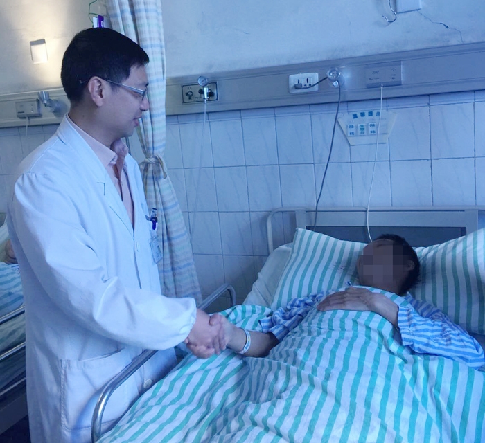 “真是太感謝你們了,謝謝你們救了我的命?!?月19日,我院為一例罕見的布加綜合征患者實施了手術,手術成功后,患者王先生握著血管外科專家王李華的手,激動地說著感謝,同樣的一句話,不知重復了多少遍,每重復一遍,他的淚水就止不住流下來。這是喜悅的淚水,是感激的淚水,是劫后重生的淚水。