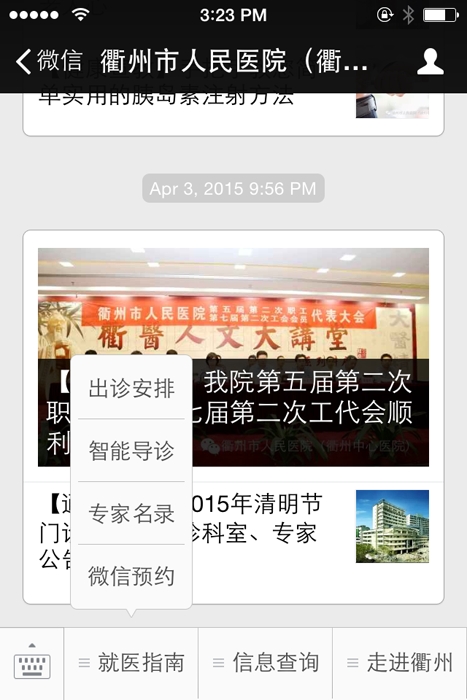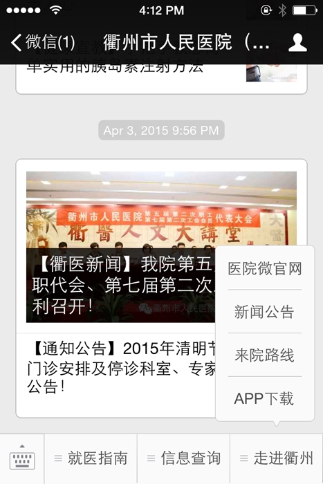 衢州市人民醫(yī)院微信公眾平臺(tái)新功能開(kāi)通啦!