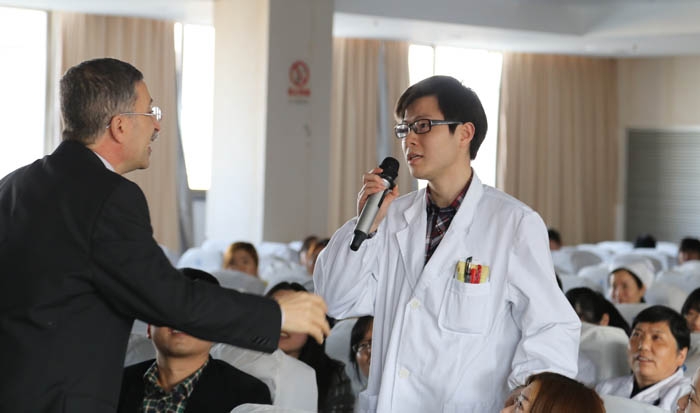 ??? Ashraf dahaba教授也是中國人民解放軍第四軍醫(yī)大學,浙江大學醫(yī)學院附屬第一醫(yī)院,附屬邵逸夫醫(yī)院客座教授和顧問,在臨床麻醉,重癥監(jiān)護醫(yī)學,疼痛治療,臨床神經(jīng)病學和神經(jīng)外科方面雜志發(fā)表過很過文章。本次講座Dr. Ashraf Dahaba教授圍繞與臨床相關研究的熱點問題進行了深入探討和廣泛交流,Ashraf Dahaba教授精彩紛呈演講技巧,不僅讓這種專業(yè)性強,原本枯燥無味的課程變得生動、幽默;而且還活躍了現(xiàn)場氣氛。奧地利專家例舉了肝臟移植手術中的應用進行分析,并舉一反三引出對其它疾病的分析,授課風趣幽默,與大家相互提問,把大家引入了手術麻醉的場境。