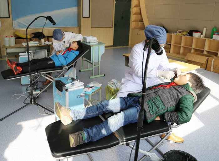 ??? 3月24日,我院口腔科的醫(yī)師來到衢州市大成小學,為二年級的50余位學生做了口腔檢查,并給孩子們做了六齡牙的窩溝封閉,防止齲齒的發(fā)生。