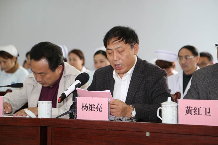 ?? ??? 程君標(biāo)致歡迎詞,對衢州市人民醫(yī)院開化分院掛牌成立表示祝賀。