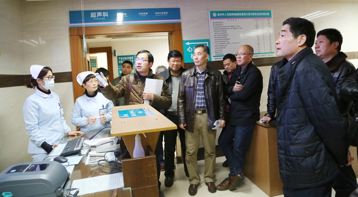 ??? 市衛(wèi)生信息中心負(fù)責(zé)人胡雅國現(xiàn)場介紹了“智慧衛(wèi)生健康衢州”具備的六大功能,即在線預(yù)約掛號、檢驗檢查查詢、院外候診服務(wù)、區(qū)域影像共享、區(qū)域診療信息、醫(yī)療服務(wù)評價。市局領(lǐng)導(dǎo)一行分別到門診大廳的自助服務(wù)區(qū)、醫(yī)生診室工作站、檢驗科、超聲科、放射科等地點,現(xiàn)場體驗了各項功能的應(yīng)用,交流和探討實際使用過程中存在的問題及改進(jìn)意見。