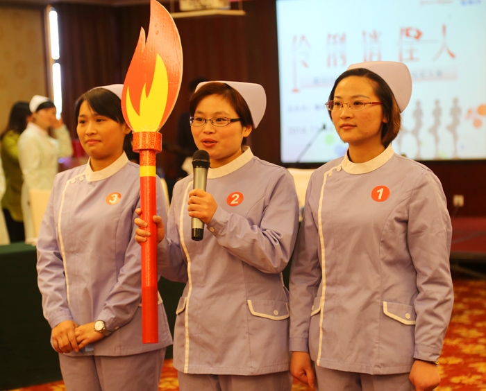 ??? 本次競賽有來自全市各縣(市、區(qū))的30名護(hù)士分別組成10支代表隊(duì),小虎隊(duì)、夢(mèng)之隊(duì)、花仙子隊(duì)、降糖先鋒隊(duì)、飛揚(yáng)隊(duì)、火焰隊(duì)、錢江源天使隊(duì)、風(fēng)之采隊(duì)、神針隊(duì)、攜手隊(duì)參加比賽。大賽分風(fēng)采展示和知識(shí)競賽兩個(gè)階段進(jìn)行。首先是團(tuán)隊(duì)風(fēng)采展示階段, 10支代表隊(duì)依次入場,各展所長,配以賞心悅目的ppt、動(dòng)感十足的音樂、優(yōu)美妙曼的舞姿、膾炙人口的快板,展現(xiàn)了團(tuán)隊(duì)風(fēng)采,隊(duì)名響亮勵(lì)志,口號(hào)昂揚(yáng)向上。