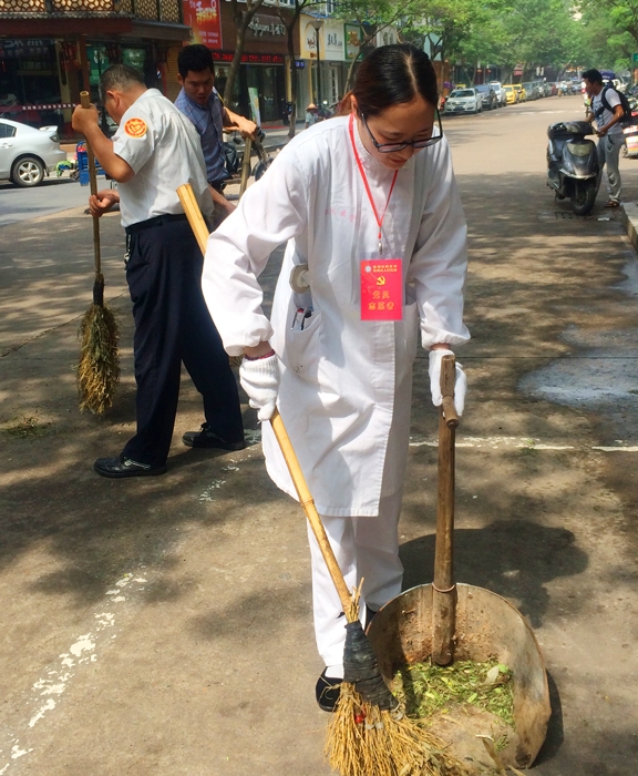 ??? 宣誓儀式結(jié)束后,新黨員在府山街道工作人員的帶領(lǐng)下,冒著高溫,熱情高漲地為府山街道轄區(qū)清除雜草,撿拾垃圾,為“五水共治,潔凈家園”貢獻(xiàn)自己的一份力量。