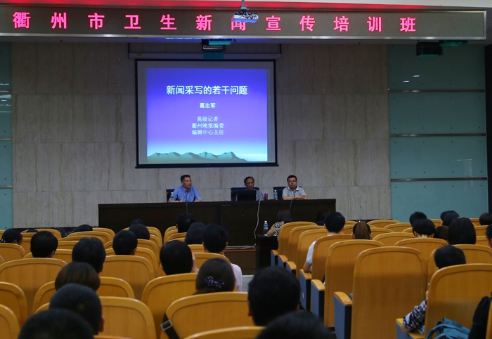 ??? 培訓(xùn)班邀請(qǐng)了《衢州晚報(bào)》編委、編輯中心主任葛志軍及衢州新聞網(wǎng)主編汪江漁就新聞要素的編輯、新聞素材的采寫、發(fā)掘新聞的方式、通訊員如何報(bào)道醫(yī)療衛(wèi)生類新聞、衛(wèi)生新聞的發(fā)現(xiàn)與捕捉等內(nèi)容進(jìn)行了授課,并與參會(huì)人員一起探討如何提高正面報(bào)道的宣傳效果、突發(fā)事件的應(yīng)對(duì)和報(bào)道網(wǎng)絡(luò)輿情監(jiān)測(cè)的要點(diǎn)及注意事項(xiàng)。