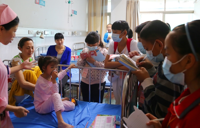 ??? 第一站,兒科病房。責(zé)任護(hù)士洪顏向他們介紹了病房的環(huán)境及工作流程,隨后,帶著小記者一起和醫(yī)生進(jìn)行了晨間查房,看醫(yī)護(hù)人員如何對患兒進(jìn)行細(xì)致的檢查,對患兒家屬提出的疑問進(jìn)行耐心的解答。在查房的過程中,小記者還為住院的患兒送上了“六一”兒童節(jié)的禮物,希望他們能早日康復(fù)!