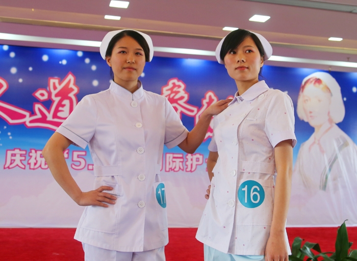 ??? 活動現場,20套新版護士服在T臺上進行了展示,導診服、孕婦服、分體裝、冬裝;淡藍、淺綠、嫩粉、小碎花……表現了最現代、清新、簡約、端莊、靚麗的護士形象,精彩節(jié)目充分展示了白衣天使們剛柔并濟、多才多藝的一面。