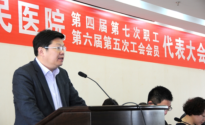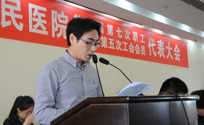 ????4月13日,我院第四屆第七次職工代表大會(huì)暨第六屆第五次工會(huì)會(huì)員代表大會(huì)在學(xué)術(shù)報(bào)告廳隆重舉行。陳震宏院長作了《醫(yī)院工作報(bào)告》,徐天才書記作了《衢州市人民醫(yī)院職工獎(jiǎng)懲辦法》(第三次修訂)的報(bào)告,醫(yī)院工會(huì)副主席柳錫松作了《醫(yī)院工會(huì)工作報(bào)告》,王巨宏副院長作了《醫(yī)院財(cái)務(wù)工作報(bào)告》,經(jīng)審委主任沈紅作了《醫(yī)院工會(huì)經(jīng)費(fèi)審查工作報(bào)告》,工會(huì)委員胡澤富作了《提案工作報(bào)告》。