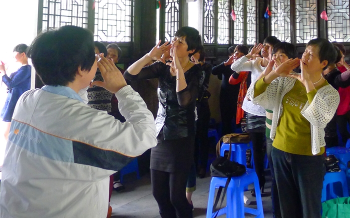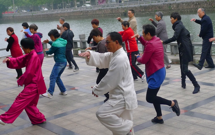 ??? 4月20日晨,在南湖西公園,癌癥康復俱樂部第二期太極拳免費培訓開始。市太極名師張雅琴老師熱心帶教,30多名癌癥康復俱樂部會員參加培訓。