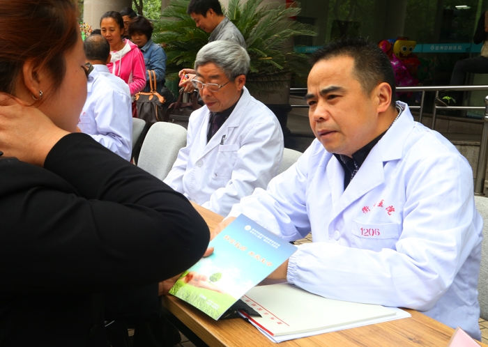 ??? 4月20日上午,在市人民醫(yī)院門診大樓前舉辦了第二十屆全國腫瘤防治宣傳周義診咨詢活動。我院腫瘤外科、腫瘤放療科、普外科、營養(yǎng)科、中醫(yī)科等專家、護士等志愿者共20余人為市民提供義診咨詢服務,并贈送腫瘤防治宣教資料。本次活動共接待市民200余人次,發(fā)放宣教資料300多份。
