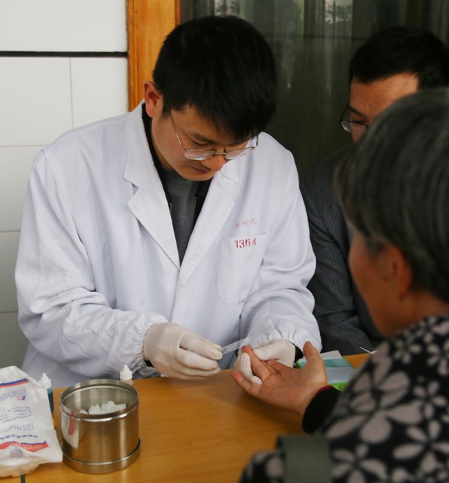 ??? 3月28日,我院心血管內(nèi)科、呼吸內(nèi)科、內(nèi)分泌科、神經(jīng)內(nèi)科等專家組成的黨員志愿者義診服務(wù)隊走進(jìn)府山街道北門社區(qū)開展義診活動,把愛心服務(wù)真正送到居民家門口。
