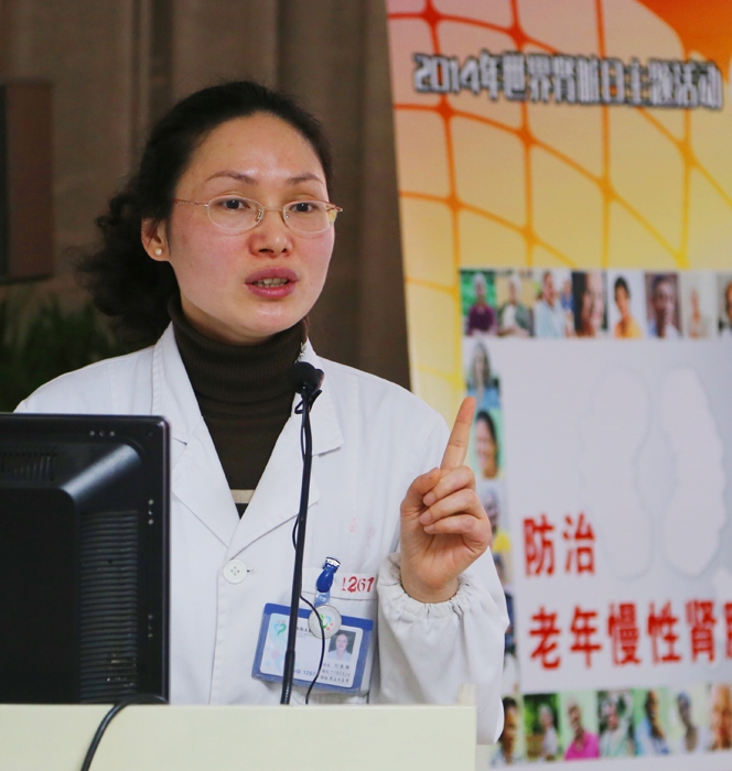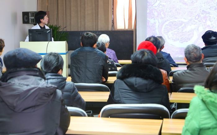 ??? 今年3月13日是第九屆世界腎臟病日,主題是“防治老年慢性腎病”。為了讓腎臟病患者及家屬了解更多的腎臟病知識,我院腎內科在五樓示教室開展了第一次腎友會,50余名患者與醫(yī)護人員歡聚一堂,聆聽了腎臟病防治知識講座,場面非常溫馨。