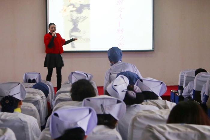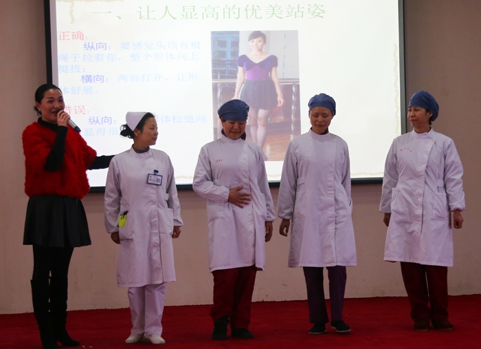 ??? 為提升我院女職工禮儀修養(yǎng),展示良好形象,豐富女職工的業(yè)余文化生活,使全體女職工能更好地在今后的工作和生活中展現(xiàn)知識(shí)女性優(yōu)雅、靚麗的風(fēng)采,3月7日下午,醫(yī)院婦委會(huì)精心組織并邀請(qǐng)“春雨禮儀—新伊禮藝學(xué)堂”禮儀形體講師董金霞來(lái)院作《優(yōu)雅女性魅力形》專(zhuān)題講座。