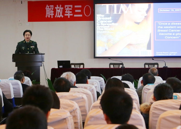 ??? 解放軍三〇七醫(yī)院是一所集醫(yī)療、科研、教學(xué)于一體的三級(jí)甲等醫(yī)院,是隸屬解放軍軍事醫(yī)學(xué)科學(xué)院的一個(gè)正師級(jí)單位。該院擁有全軍骨髓移植中心、腫瘤中心、中毒救治中心、放射病治療中心、采供血中心等五個(gè)全軍醫(yī)學(xué)??浦行?,在腫瘤診療、化學(xué)毒物中毒急救、放射病治療、乳腺外科等領(lǐng)域?qū)?苾?yōu)勢(shì)突出。當(dāng)天,解放軍三〇七醫(yī)院乳腺腫瘤專家江澤飛教授、肺部腫瘤專家高紅軍教授、血液病專家余長(zhǎng)林教授、乳腺外科專家尉承澤教授還在我院進(jìn)行了義診,短短的1個(gè)小時(shí)內(nèi)實(shí)地為近40名患者進(jìn)行了會(huì)診。江澤飛教授、高紅軍教授還分別為全院醫(yī)護(hù)人員作了《科學(xué)決策人文服務(wù)》和《TKI耐藥治療策略》的專題講座。