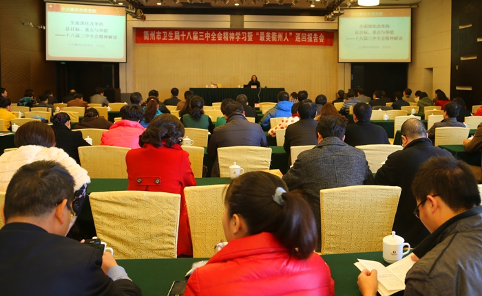 ??? 11月29日下午,市衛(wèi)生局十八屆三中全會精神學習暨“最美衢州人”巡回報告會在東方大酒店召開。我院中層以上干部參加了本次活動。