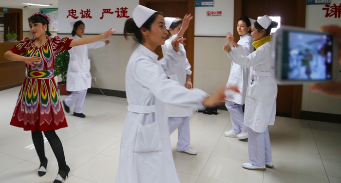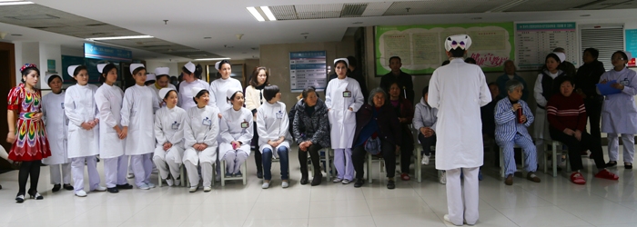 ??? 新疆烏什縣衛(wèi)生學(xué)員—熱依拉首先帶來(lái)了一段民族舞蹈表演,精彩的表演一下子就拉近了醫(yī)護(hù)人員與病人之間的距離。座談會(huì)上,護(hù)士們給患者普及了有關(guān)眼科、耳鼻咽喉科、高血壓、糖尿病等方面的科普小知識(shí)。與會(huì)患者及家屬也暢所欲言,提出了中肯的意見(jiàn)和建議。