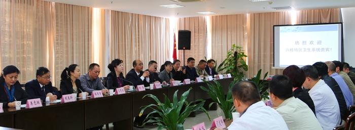 ??? 10月28日我院對(duì)口支援醫(yī)院貴州省六枝特區(qū)人民醫(yī)院一行14人由六枝特區(qū)衛(wèi)生局局長郭永賢帶隊(duì)赴我院參觀學(xué)習(xí)。我院在十二樓會(huì)議室舉行了座談會(huì),衛(wèi)生局副局長周衛(wèi)華、院長陳震宏及黨委書記徐天才對(duì)他們一行的到來表示了熱烈地歡迎。院領(lǐng)導(dǎo)班子成員及部份中層干部參加了座談會(huì)。