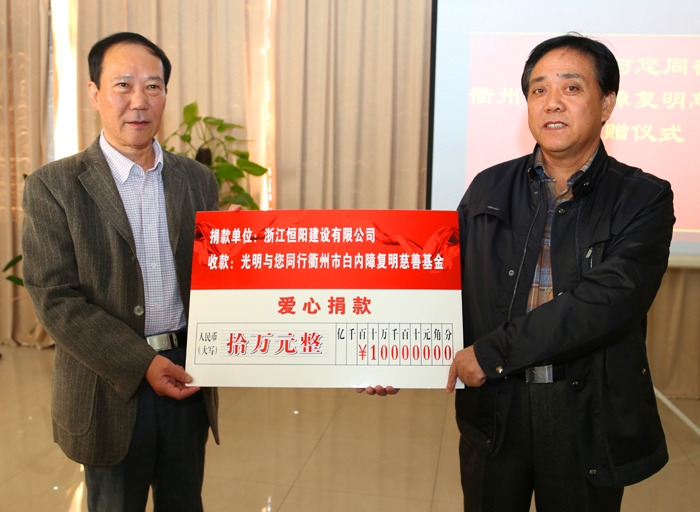 ??? 10月25日上午,由衢州市慈善總會、衢州市人民醫(yī)院共同主辦的“光明與您同行”衢市白內(nèi)障復明慈善基金捐贈儀式在我院十二樓會議室舉行。