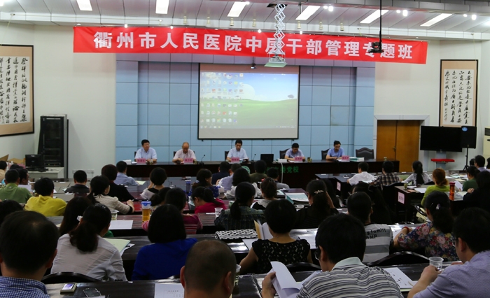 ??? 9月7至8日,我院在市委黨校舉辦中層干部管理培訓班。衛(wèi)生局黨委書記、局長陳根成,市委黨校副校長王洪明,副局長周衛(wèi)華應邀出席開班儀式,院領導、職能部門、臨床醫(yī)技科主任、護士長130余人參加了本次培訓,會議由黨委書記徐天才主持。