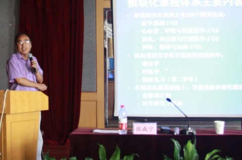??? 之后,張咸寧老師介紹了浙江大學(xué)醫(yī)學(xué)部的PBL教學(xué)工作,分別從本科教學(xué)狀況、浙江大學(xué)新醫(yī)學(xué)課程體系的特點(diǎn)、模塊課程學(xué)習(xí)要求、PBL“通過”的標(biāo)準(zhǔn)、PBL中學(xué)生的角色和學(xué)習(xí)中可能出現(xiàn)的問題、PBL的基本步驟等方面進(jìn)行了詳細(xì)的講解。