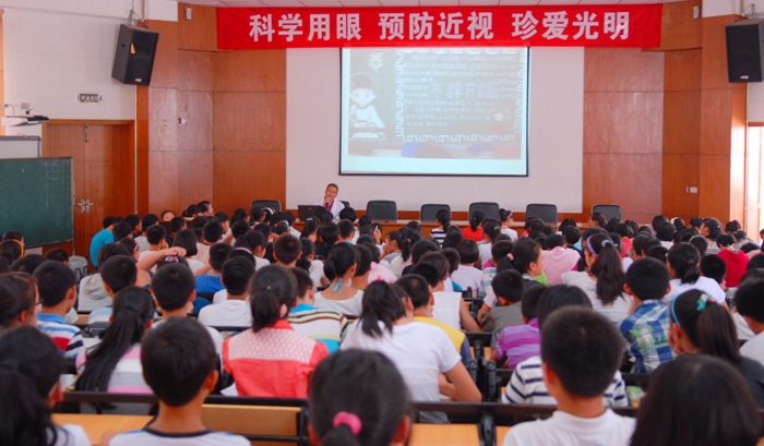 ??? 我院青少年近視防治中心鄭志剛副主任醫(yī)師給白云學(xué)校初一年級的450名學(xué)生帶來了一堂生動的“科學(xué)用眼 預(yù)防近視 珍愛光明”的專題講座。鄭醫(yī)師圖文并茂地講解了近視的成因及其預(yù)防保健方法,引導(dǎo)學(xué)生們合理用眼,關(guān)注用眼衛(wèi)生,樹立起預(yù)防近視從一點一滴做起的觀念,并現(xiàn)場傳授了眼保健操――晶體操,解答了學(xué)生提出的各種問題。講課現(xiàn)場氣氛活潑,受到了學(xué)校師生的熱烈歡迎和好評。