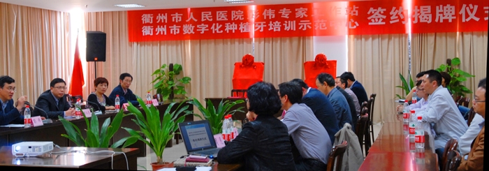 ??? 4月26日下午,衢州市人民醫(yī)院彭偉專家工作站暨衢州市數(shù)字化種植牙培訓(xùn)示范中心簽約揭牌儀式在十二樓會(huì)議室舉行。這是我院繼浙醫(yī)一院鄭樹森院士工作站、浙大婦保院黃荷鳳專家工作站之后建立的又一所專家工作站。