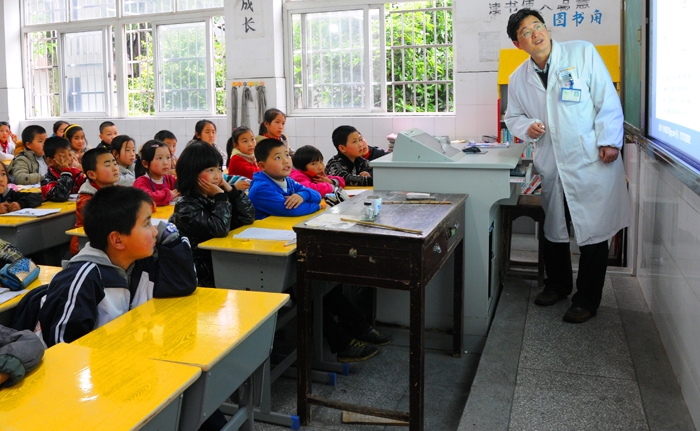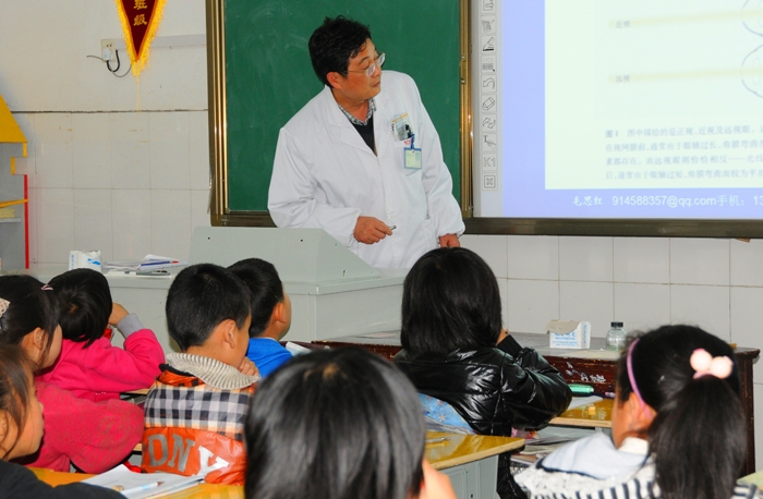 ??? 此次活動(dòng),共為學(xué)校一至四年級(jí)11個(gè)班的學(xué)生做了視力檢查和口腔常規(guī)檢查,發(fā)放科普小畫(huà)冊(cè)900余份。在體檢活動(dòng)開(kāi)展的同時(shí),眼科毛思紅主任醫(yī)生走進(jìn)課堂為小朋友們講解了眼結(jié)構(gòu)簡(jiǎn)介?,結(jié)膜炎防治、點(diǎn)眼藥水方法、正確洗手等衛(wèi)生知識(shí)。以圖文并茂的形式介紹遠(yuǎn)視、近視,近視的成因和正確的讀寫(xiě)姿勢(shì),鼓勵(lì)大家注意用眼衛(wèi)生,保護(hù)視力。