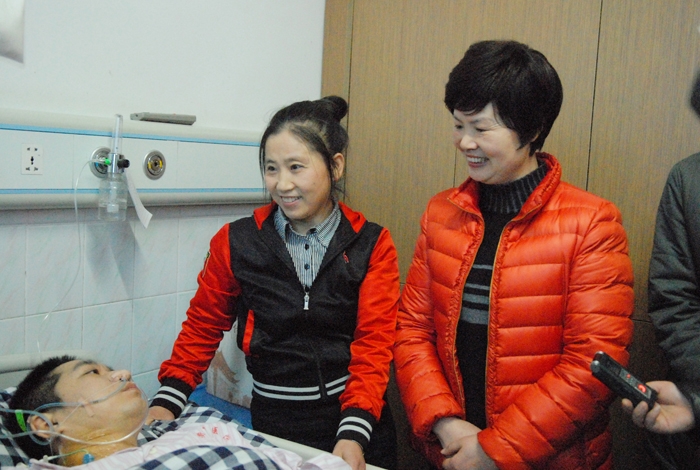 ??? 當看到姜永古病情正在好轉,慢慢對聲音有知覺、左上肢功能逐漸在恢復,諸葛慧艷部長很高興,她要求腦科中心黃強主任和康復科醫(yī)護人員在接下去的康復理療階段再接再厲,爭取讓姜永古早日康復;并親切囑咐姜永古鼓足信心,積極配合醫(yī)生的治療,爭取早日康復。