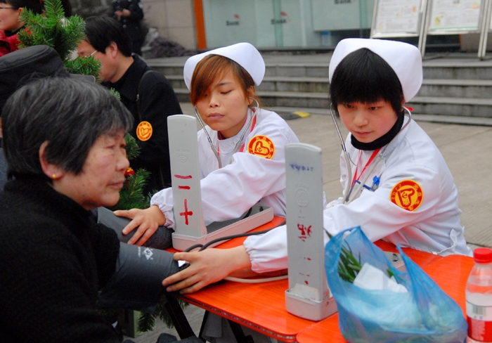 ??? 2月28日上午,我院四名黨員來到裕豐小區(qū)當(dāng)起了義工,給小區(qū)居民提供測(cè)量血壓、疾病咨詢、診治等服務(wù)。