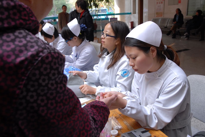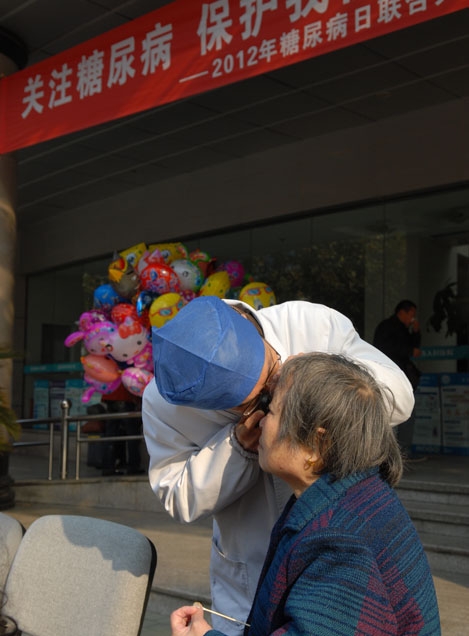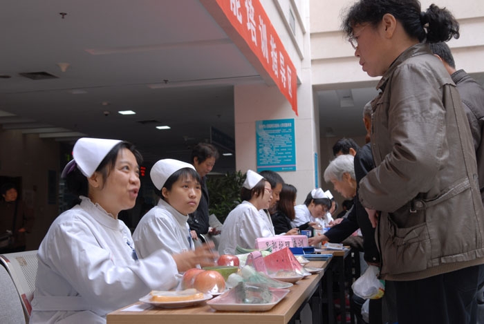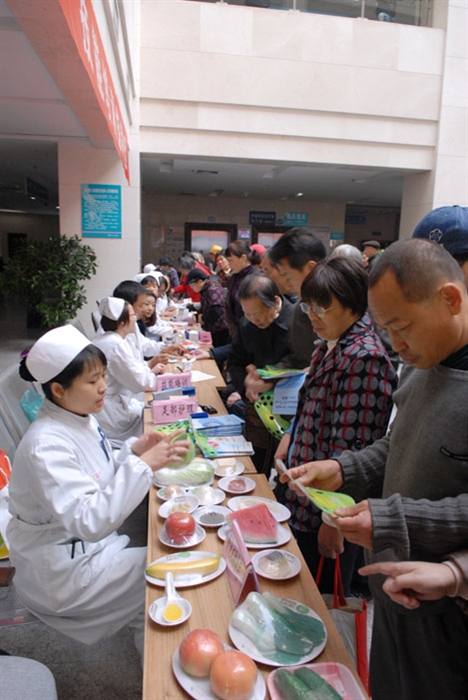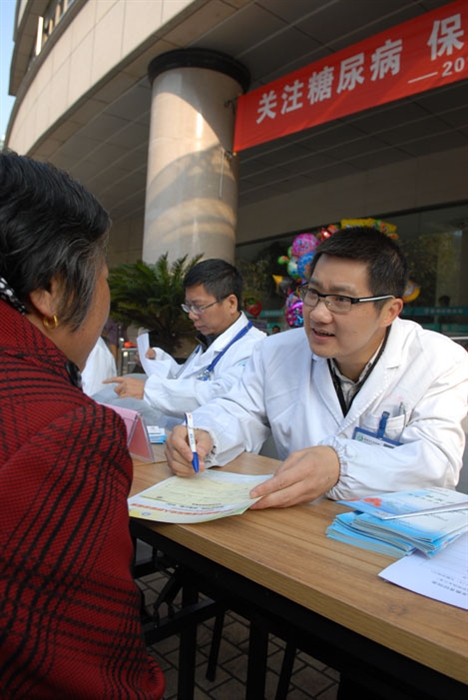 ??? 11月14日是世界第六個聯合國糖尿病日。前兩天通過報紙、短信得知市人民醫(yī)院舉辦大型糖尿病義診及宣教活動,不少市民一大早就趕到那里。不一會,幾位內分泌代謝科專家前面就聚集了不少前來問詢的人。義診專家一邊耐心地傾聽著市民朋友的咨詢,一邊微笑著跟他們聊起家長里短,在聊天的過程中將一些糖尿病防治知識普及給他們,效果明顯。義診現場還專門設立了免費血糖測量點和宣教資料發(fā)放點,專門帶了各種胰島素注射器現場為市民講解使用規(guī)范和技巧,受到了大家的贊賞。