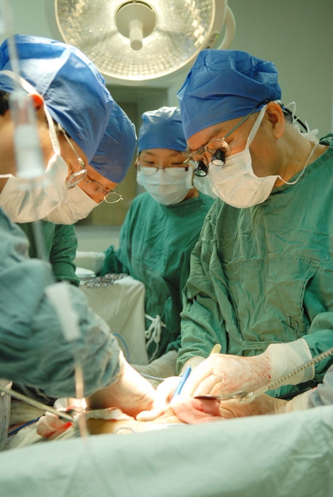 ??? 市人民醫(yī)院自建立鄭樹(shù)森院士專家工作站后,一直與院士專家工作站團(tuán)隊(duì)保持緊密聯(lián)系。百忙之中的中國(guó)工程院院士、浙醫(yī)一醫(yī)院院長(zhǎng)鄭樹(shù)森也一直致力于衢州市人民醫(yī)院的發(fā)展。除為市人民醫(yī)院醫(yī)護(hù)人員提供學(xué)術(shù)講座、遠(yuǎn)程會(huì)診、電話中解疑答惑外,還定期來(lái)市人民醫(yī)院為患者進(jìn)行手術(shù)。使患者不出衢州就得到了專家的服務(wù)。圖為11月11日,鄭院士(圖一右一)在市人民醫(yī)院為兩位衢州患者做手術(shù)?,F(xiàn)場(chǎng)參與同臺(tái)手術(shù)及觀摩手術(shù)的醫(yī)生都受益匪淺。
