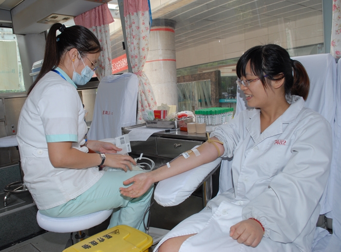 ??? 每周三市中心血站的獻(xiàn)血車一到我院,醫(yī)院員工就紛紛上車捋袖獻(xiàn)血。院領(lǐng)導(dǎo)率先垂范、干部員工緊隨其后;老獻(xiàn)血的給初次來獻(xiàn)血的鼓舞加油;休息天特意從家中趕來獻(xiàn)血和獻(xiàn)完血就急匆匆地返回工作崗位的員工數(shù)不勝數(shù)。
