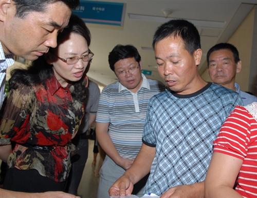 ??? 羅衛(wèi)紅一行首先來到掛號(hào)室與現(xiàn)場的市民進(jìn)行親切的交談,又查看了輸液室的現(xiàn)場工作狀況,征詢患者及醫(yī)護(hù)人員對(duì)就醫(yī)流程合理性的意見和建議。在隨后召開的座談會(huì)上,陳震宏院長匯報(bào)了醫(yī)院近期的工作情況,并就下一步的醫(yī)院總體規(guī)劃及醫(yī)院發(fā)展進(jìn)程中遇到的基礎(chǔ)建設(shè)、人才培養(yǎng)、學(xué)科建設(shè)中存在的問題向羅副市長和陳局長進(jìn)行了詳細(xì)的匯報(bào)。