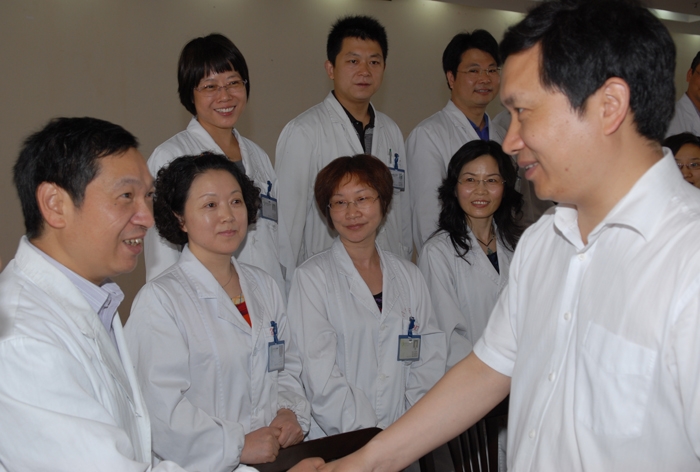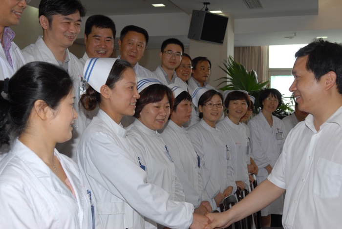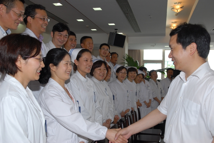 ??? 5月13日上午,市委書記趙一德在市委秘書長李鋒、市衛(wèi)生局局長陳根成陪同下視察我院。我院班子成員、部分處室負責人陪同。