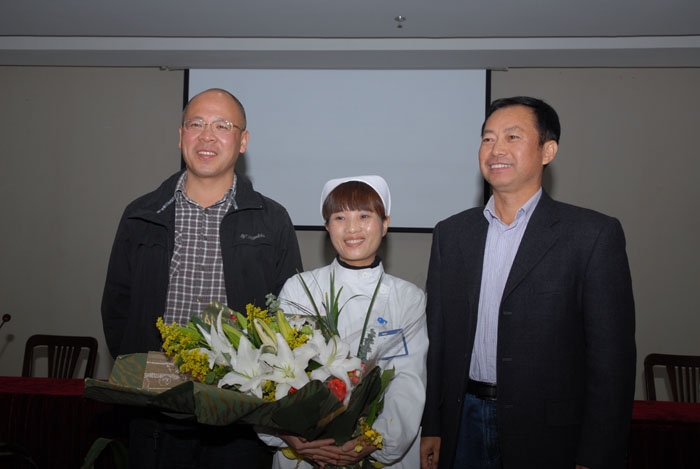 11月25日一早,院黨委書記徐天才、黨辦秘書胡泓就來到林小娟的工作崗位對(duì)其進(jìn)行了慰問。在下午舉行的衛(wèi)生系統(tǒng)廉政建設(shè)會(huì)議上,衛(wèi)生局領(lǐng)導(dǎo)對(duì)林小娟的事跡進(jìn)行了表揚(yáng),號(hào)召衛(wèi)生系統(tǒng)的醫(yī)務(wù)人員向其學(xué)習(xí)。徐周佳院長(zhǎng)向林小娟護(hù)士送上了鮮花,肯定了她救人不留名的壯舉,感謝她為白衣天使贏得了榮譽(yù)。