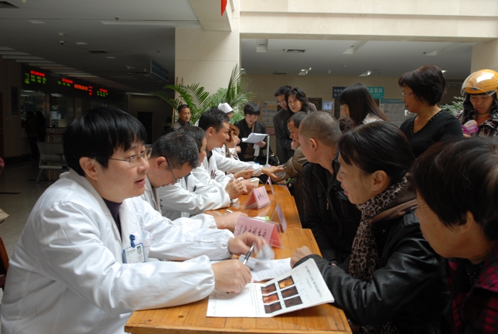 原來(lái)我院農(nóng)工黨支部為配合農(nóng)工黨市委會(huì)慶祝第23屆中國(guó)“國(guó)際科學(xué)與和平周”,特組織專家開(kāi)展為群眾義診活動(dòng)?,F(xiàn)場(chǎng)的消化科專家仔細(xì)分析咨詢者手持的胃鏡單、B超單,告之胃腸道疾病的原因、治療方案、飲食調(diào)養(yǎng);藥劑科專家詳細(xì)回答咨詢者的用藥困惑,藥物的配伍禁忌等;婦科專家耐心回答前來(lái)咨詢的女性的心中疑問(wèn):什么是更年期,如何使用激素替代,卵巢保養(yǎng)有無(wú)功效等;內(nèi)分泌專家還就高脂、高糖咨詢者如何進(jìn)行運(yùn)動(dòng)鍛煉、怎樣正確服用降糖藥、如何檢測(cè)血糖、血脂等一一進(jìn)行指導(dǎo);眼科專家為病人仔細(xì)檢查眼底和視力,告知前來(lái)咨詢者寒潮來(lái)臨時(shí)如有眼角出血,警惕高血壓、腦出血等;護(hù)理專家為100余名群眾測(cè)血壓,發(fā)放戒煙、冠心病預(yù)防、營(yíng)養(yǎng)知識(shí)等宣傳資料,提醒高血壓者及時(shí)到??凭驮\,建議高血壓者定期檢測(cè)等?;顒?dòng)現(xiàn)場(chǎng)人群攢動(dòng),群眾滿口稱贊:一進(jìn)醫(yī)院就能與這么多專家面對(duì)面,了解這么多醫(yī)學(xué)知識(shí),真好!???????????????????????????????????????????????????????