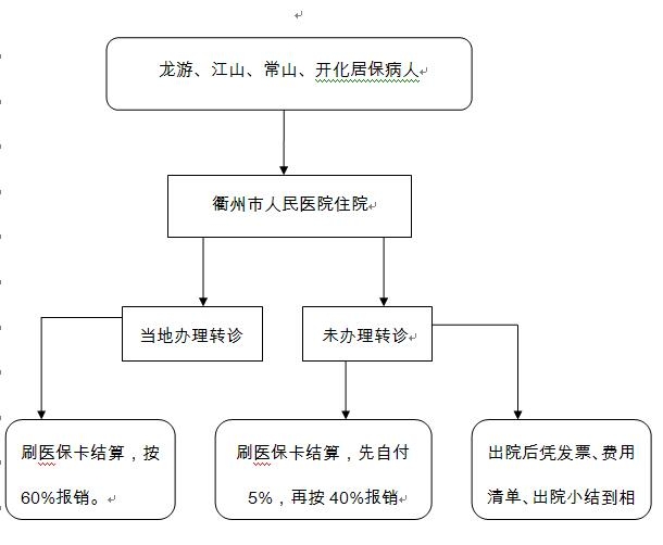 統(tǒng)籌區(qū)外居保病人住院報(bào)銷流程圖 文章來(lái)源:醫(yī)保辦 作者: 點(diǎn)擊數(shù):12638 更新時(shí)間:2017-04-27 注:意外傷害病人一律不刷卡,自費(fèi)結(jié)算。同類疾病后續(xù)治療認(rèn)定憑同類疾病轉(zhuǎn)診記錄到為其轉(zhuǎn)診的首診醫(yī)療機(jī)構(gòu)辦理特殊情況認(rèn)定;臨時(shí)急性起病認(rèn)定到當(dāng)?shù)匦l(wèi)生院辦理特殊情況認(rèn)定。符合同類疾病后續(xù)治療、臨時(shí)外出急性起病的患者在出院結(jié)算前辦理過(guò)特殊情況認(rèn)定可直接在醫(yī)院刷卡報(bào)銷。 上一篇: 衢州市柯城區(qū)城鎮(zhèn)居民醫(yī)療保險(xiǎn)報(bào)銷范圍和標(biāo)準(zhǔn) 下一篇: 最多跑一次”又升級(jí)!28種大病保險(xiǎn)特殊用藥,在衢州這些藥店可刷卡結(jié)算