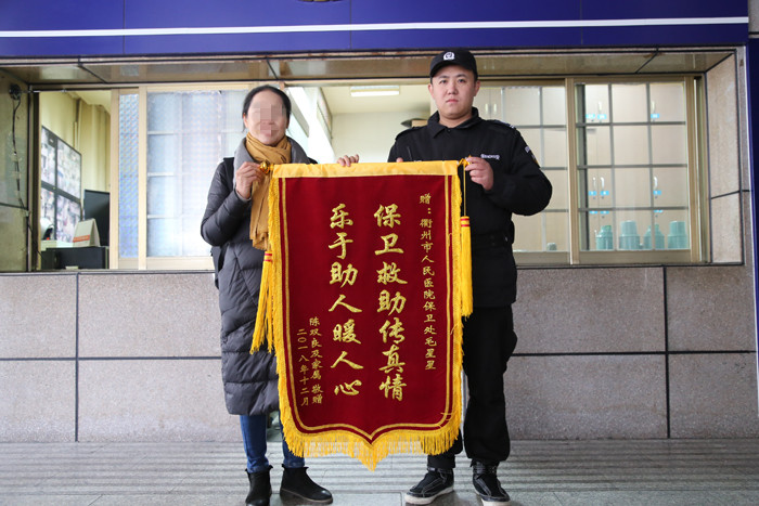 “真的太感謝你了,如果沒有你,我都不敢想象我家先生現(xiàn)在會是什么樣!”12月28日下午,繆女士帶著錦旗來到我院保衛(wèi)處,親手將錦旗送到了保安毛星星的手中?!斑@是我職業(yè)本能反應(yīng),也是我應(yīng)該做的……”收到錦旗的毛星星略帶笑意,微低下了頭,臉上微微泛紅,連連說著這兩句話。