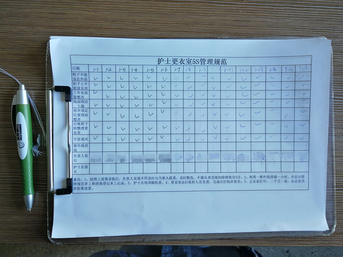 第二部分,就是5S管理,以清潔為基礎(chǔ),結(jié)合清掃、整理、整頓,最終環(huán)繞素養(yǎng)為包圍圈進(jìn)行管理。利用規(guī)范物品放置;嚴(yán)格按照標(biāo)線標(biāo)擺放;嚴(yán)格按照品名、數(shù)量、數(shù)目進(jìn)行安放;獨(dú)創(chuàng)更衣室、休息室5S登記表格,標(biāo)記物品取用方向,結(jié)合最多跑一次,劃分休息區(qū),利民溫馨兩不誤。