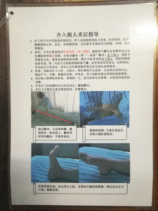 改變以往的紙質(zhì)宣教方式,轉(zhuǎn)變?yōu)槲⑿哦S碼宣教方式,綠色環(huán)保的同時(shí),更能為患者帶來便利。除了日常的疾病健康宣教以外,結(jié)合科室特點(diǎn),我們還自制了介入手術(shù)前、術(shù)后指導(dǎo),懸掛于病房之內(nèi)。