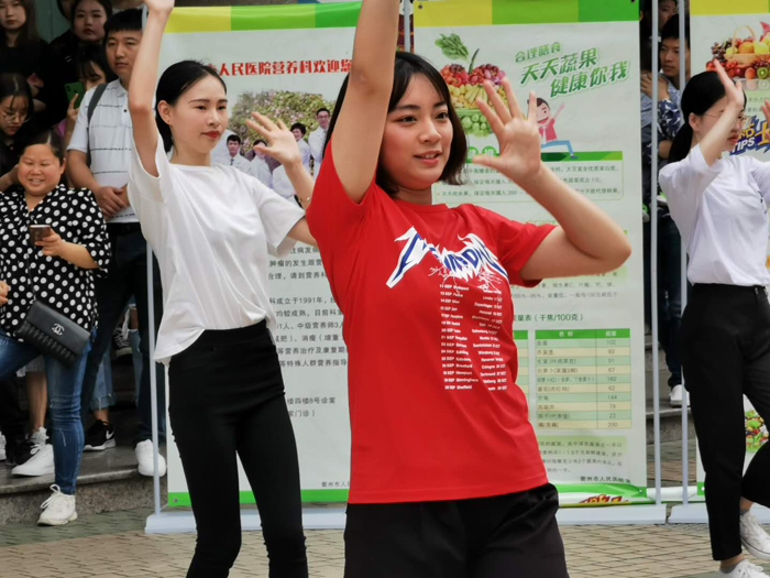 5月12-18日是全民營養(yǎng)周,活動主題為“合理膳食、天天蔬果、健康你我”,為普及公眾營養(yǎng)知識,倡導(dǎo)大眾平衡膳食,健康生活。5月14日上午,我院營養(yǎng)科在門診前廣場舉行“全民營養(yǎng)周”活動,此次活動開始前,由衢州市職業(yè)技術(shù)學(xué)院在校學(xué)生為市民表演“營養(yǎng)健康舞蹈”,促進(jìn)市民健康運(yùn)動。