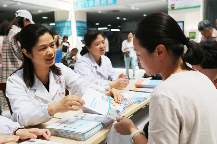 活動(dòng)現(xiàn)場(chǎng),醫(yī)務(wù)人員免費(fèi)發(fā)放科普宣傳冊(cè),通過(guò)滾動(dòng)播放科普視頻,向公眾介紹什么是臨床試驗(yàn)、藥物臨床試驗(yàn)的作用等知識(shí)。