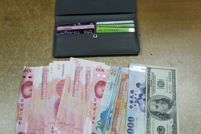 6月20日上午7點(diǎn)50分,我院保衛(wèi)處的徐永忠在門診大廳內(nèi)巡邏時(shí),發(fā)現(xiàn)一臺(tái)自助機(jī)上有一個(gè)灰色的女士錢包,和一旁的志愿者在大廳內(nèi)尋找失主未果,他馬上向班長(zhǎng)盧水良匯報(bào),并一起開包清點(diǎn),發(fā)現(xiàn)里面有人民幣2600元、以及美元、臺(tái)幣、港幣等,還有數(shù)張銀行卡及貴賓卡。
