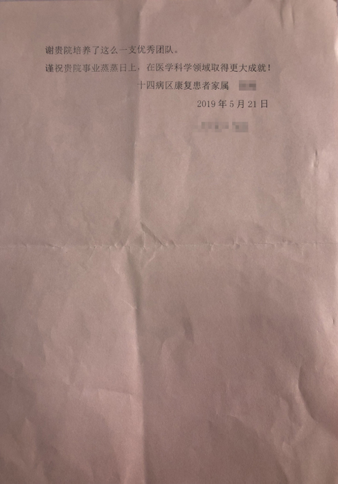 收到感謝信只是我們醫(yī)院感人事跡中的小小一幕,每一句感謝的背后都記載著一個(gè)動(dòng)人的故事和一段難忘的醫(yī)患深情,和諧醫(yī)患故事在我院不斷上演。醫(yī)護(hù)人員的精心、耐心和細(xì)心,一點(diǎn)一滴地記錄在患者及家屬的心中,也更激勵(lì)著全院醫(yī)護(hù)人員以更加飽滿的熱情、精湛的醫(yī)術(shù)、優(yōu)質(zhì)的服務(wù)為廣大人民群眾的健康保駕護(hù)航。
