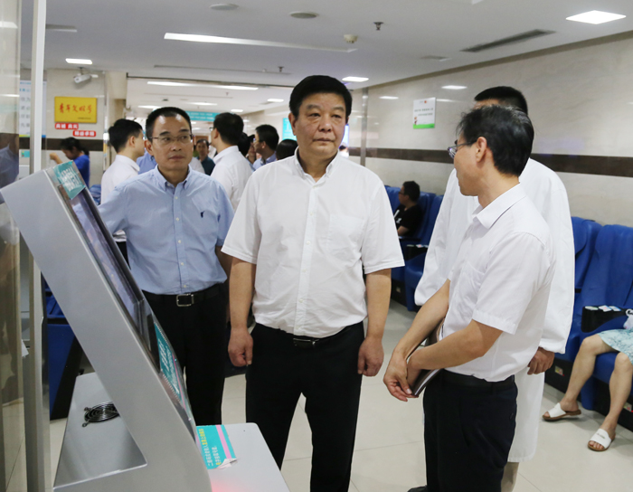 9月3日,省衛(wèi)生健康委直屬機(jī)關(guān)黨委專職副書(shū)記、機(jī)關(guān)紀(jì)委書(shū)記楊輝一行6人來(lái)我院檢查省級(jí)“青年文明號(hào)”創(chuàng)建工作。市衛(wèi)健委黨委副書(shū)記、副主任姚宏平,我院黨委書(shū)記徐天才陪同檢查。